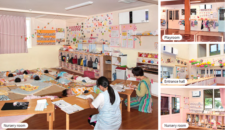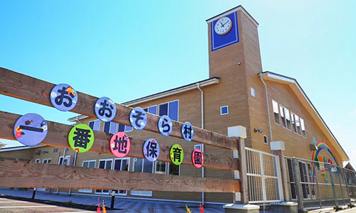 Established in 2017. Nurser y school is located in “OOZORA-MURA,” a facility where senior housing with services, development support center for persons with disabilities, restaurant, and farmers market cooperate and hold exchanges.