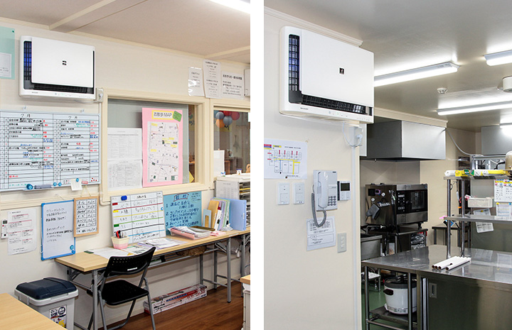 Nursery schools, where small children spend time in groups, face a challenge with the air environment. Until now, the school performed thorough cleaning and moisture control, etc., to maintain a hygienic environment, but they wanted to implement air purifiers as a more effective measure.
