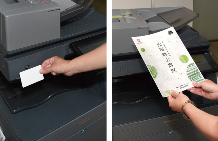 We received praise from on-site nursing staff members stating that in the hospital ward, where there was a new implementation on this occasion, the burden of printing tasks was eased, making it possible to focus more on caring for patients. In addition, the implementation has also made it possible to print examination results and the like with speed and clarity, leading to a reduction in waiting time for patients. In terms of reduced costs, restrictions on color printing through the usage of IC card authentication have been effective. Instances of, for example, accidentally printing large quantities in color have been eliminated by introducing a restriction in which color printing is not possible without borrowing an IC card from the General Affairs Section.