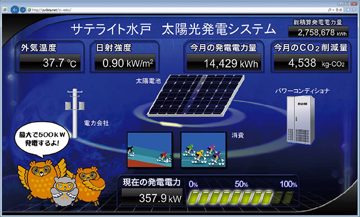 Satellite-Mito parking lot. Started operations in Feb. 2010, with an annual average power generation amount of approx. 620,000kWh.