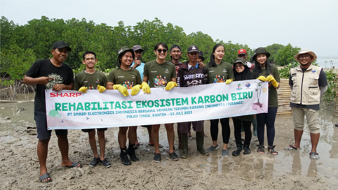 Indonesian production and sales base SEID worked with Yayasan Terumbu Karang, a non-profit organization focused on conserving coral reefs, and with the residents of Tunda Island to plant 3,300 mangrove seedlings as part of blue carbon*2 regeneration.