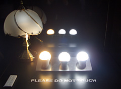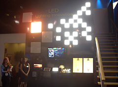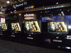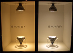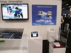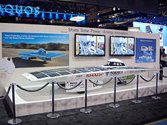 Sharp's CES booth had a range of items on display that drove home the message of Sharp as an eco-positive company: the AQUOS LE920, LE820, LE810; a solar car equipped with Sharp compound solar cells, a vehicle recently driven to victory by the Tokai University team in the Global Green Challenge, one of the world's largest solar car races; and LED lights boasting far longer life and greater energy efficiency than conventional incandescent lights and representing the future of illumination.