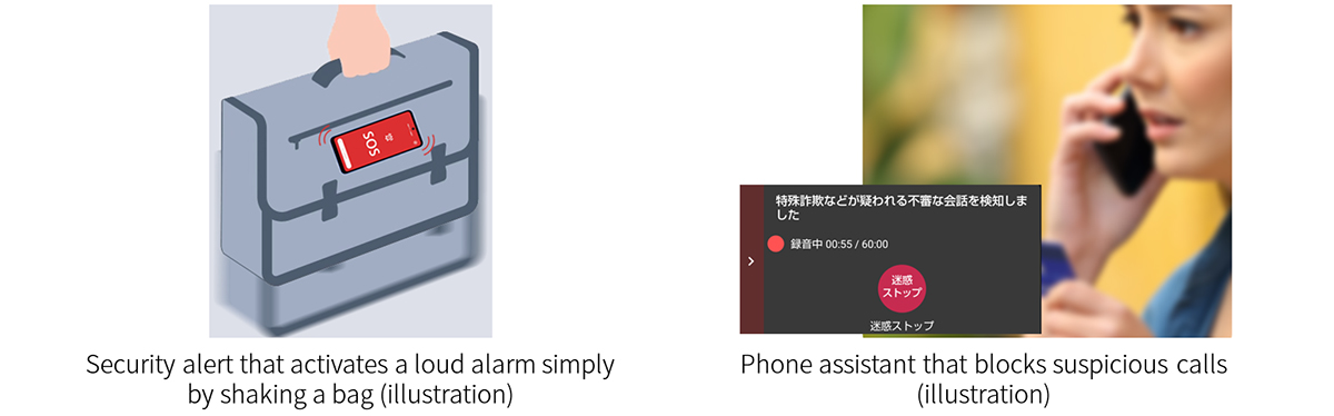 This device features a security alert function that is activated by vibration, a first for smartphones. Simply shaking the device will trigger a loud alarm and automatically call pre-registered contacts to inform them of the emergency. It will also send location information simultaneously. This function responds even when the smartphone is stored in a bag or backpack, ensuring immediate notifications in case of emergencies. Additionally, an AI-powered phone assistant function is included, which analyzes call content to block suspicious calls, providing enhanced peace of mind.