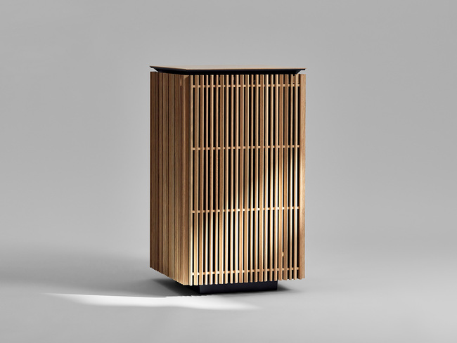 This air purifier was designed under the supervision of Kengo Kuma & Associates. It has a furniture-like appearance using real wood for its exterior, allowing it to blend seamlessly into various premium spaces. Air purifiers are widely used in homes, public facilities, accommodations, offices, and other places where many people gather. However, there was a demand for creating an air purifier which harmonizes with premium spaces featuring natural materials like wood. This air purifier features a fine vertical wooden lattice exterior inspired by traditional Japanese designs like Sumushiko blinds and Shoji screens. These elements produce a high-quality design which blends seamlessly into various high-end spaces as if it were a piece of furniture. The exterior, carefully assembled by the hands of woodworkers, has a different expression for each piece. The more time passes, more apparent the wood grain becomes, creating a sense of affection. Sharp aims to create a new type of home appliance which can be used like furniture for a long time with affection.