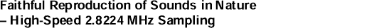 The amplified 1-bit signals sampled at 2.8224 MHz ensure a frequency range of 5 Hz -- 100 kHz (+ 1 dB/-3 dB).