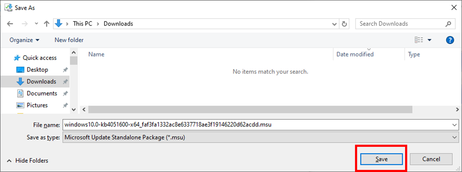 - A title with the name from "Table 1. Information on the updates" in the location you chose at step 5. Update is downloaded to the folder.