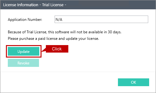 If the activation was a failure, the screen with a message "Failed to activate the license. Please check the Application Number," will appear. For further information, please see "Although I enter a product key application number, the activation fails".