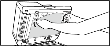 După ce închideți alimentatorul automat de documente, contraplaca pentru documente de pe sticla pentru documente se atașează la alimentatorul automat de documente.