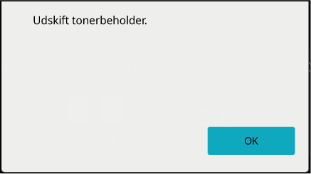 når denne meddelelse vises. Sørg for at udskifte tonerpatronen,