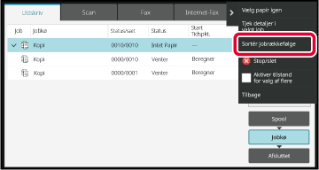 Tryk på jobbet til prioritetsbehandling, og tryk derefter på [Sortér jobrækkefølge] på handlingspanelet.