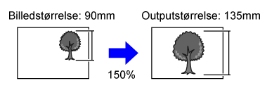 Størrelsesforholdet justeres automatisk baseret på originalens størrelse og størrelsen af det valgte papir.