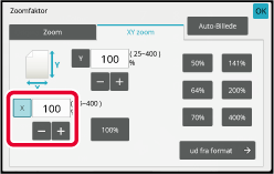 NEM TILSTANDTryk på tasten [Zoomfaktor], og tryk derefter på fanen [XY zoom].