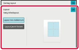 Tryk på tasten [Layout m/u mellemrum] eller tasten [Layout jævnt fordelt], og tryk derefter på fanen [OK].
