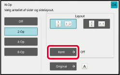 Vælg 2-op for at kopiere to originalsider på ét ark, 4-op