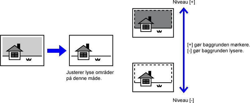 Hvis du ændrer niveauet for [Baggrundsjustering] til [+]-siden,