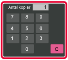 Læg originalen i den automatiske dokumentfeeder eller på glaspladen.Vælg antal kopier (antal sæt) ved hjælp af de numeriske taster.