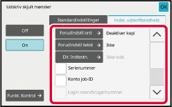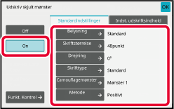 Tryk på tasten [On], og angiv hvert element på fanen [Standardindstillinger] efter behov.