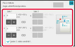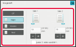 Tryk på displayfeltet for talværdier, der angiver marginskiftområdet på forsiden eller bagsiden, og indtast området med taltasterne.