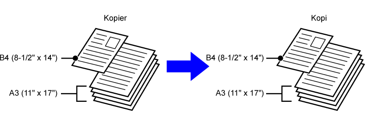 Brug denne indstilling, når originalerne har 2 forskellige størrelser og ikke har sider med samme længde. Denne indstilling kan kun anvendes med følgende kombinationer af originalformater: • A3 og B4 • A3 og B5 • B4 og A5 • A4 og B5 • B4 og A4R • B4 og A5 • B5 og A4R • B5 og A5 • 11"x17" og 8-1/2"x14" • 11"x17" og 8-1/2"x13" • 11"x17" og 5-1/2"x8-1/2"
