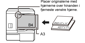 Læg originalen med tekstsiden opad i dokument-feederen med hjørnerne tilpasset efter dokumentfeederens fjerneste venstre hjørne.