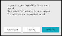 Gentag dette trin, indtil alle originaler er scannet.Gentag indtil alle sider er blevet scannede og kontroller eksempelvisningsbilledet på eksempelskærmen.