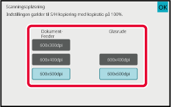 Opløsningen kan indstilles til både dokumentfeeder og glasplade. Når indstillingerne er angivet, skal du trykke på tasterne [OK] og [Tilbage] efter hinanden.