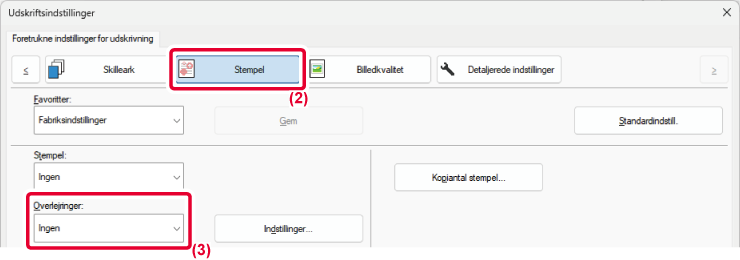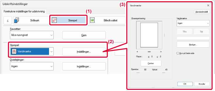 - Vælg [Vandmærke] fra "Stempel" og klik på [Indstillinger].