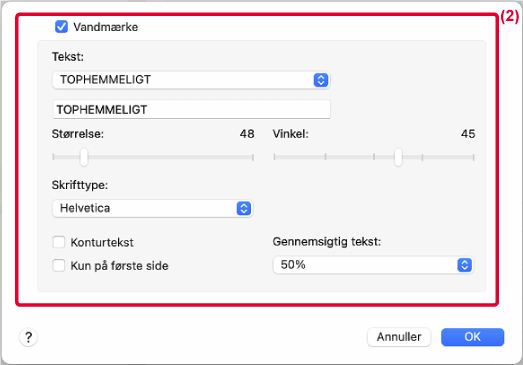 vandmærkeindstillinger som f.eks. valg af en tekst.