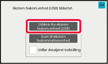 Tryk på [Udskriv fra ekstern hukom.enhed (USB)], når skærmen til valg af handlingen vises.