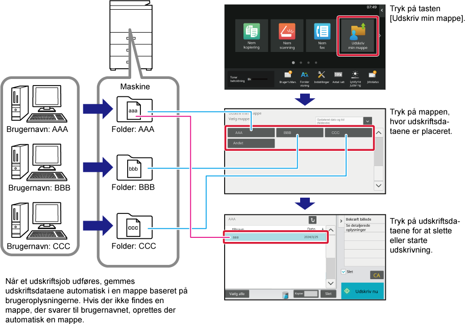 Brugere kan udskrive udskriftsdata fra deres egne mapper på