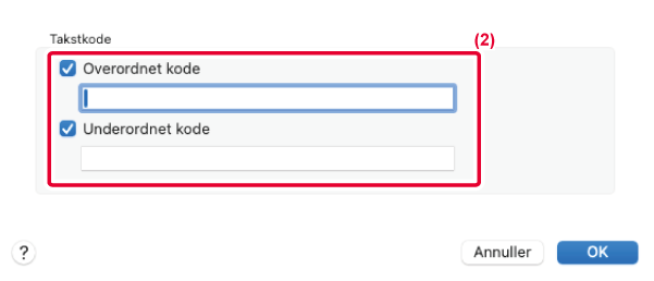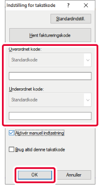 Indtast overordnet kode og underordnet kode og klik på [OK].