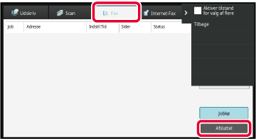 Tryk på jobstatusdisplayet og tryk på fanen [Fax].