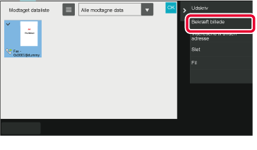 at trykke på jobstatusdisplayet og trykke på [Kontroller modtagne data] i handlingspanelet