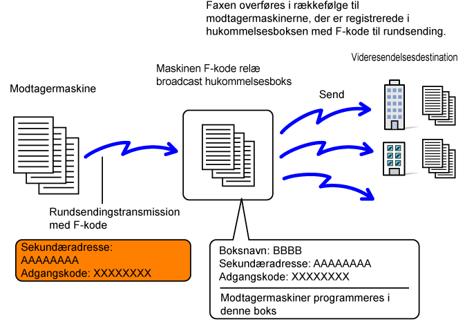 Din maskine rundsender herefter faxen til hver af destinationsmaskinerne,