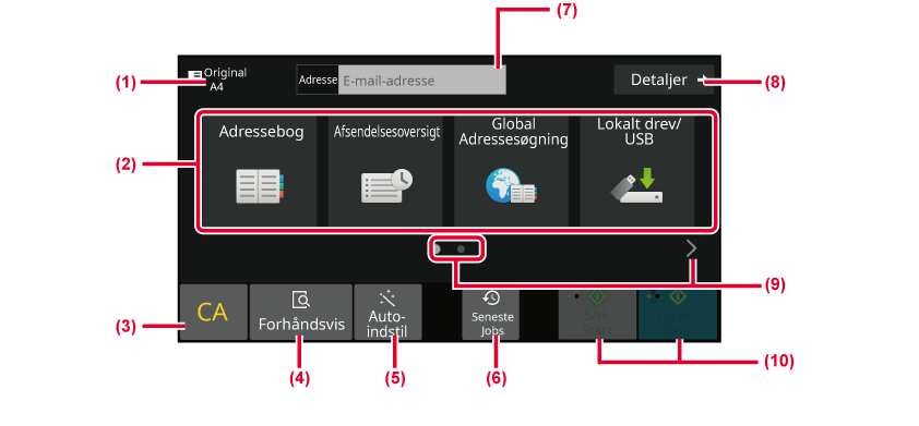 funktionen Billedsending, inklusive Scan til e-mail og Scan til