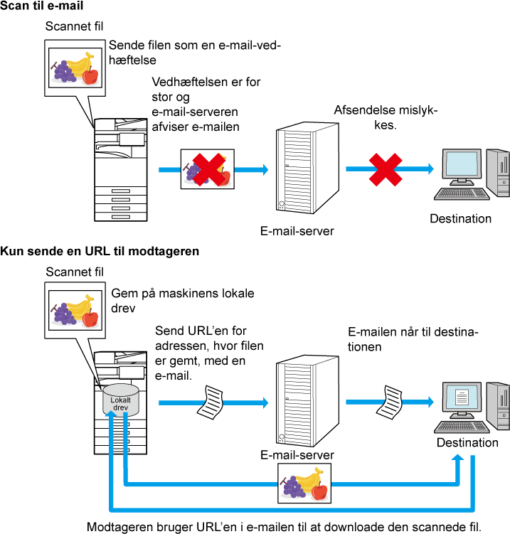 Når filen er stor, er der risiko for, at e-mail-serveren afviser