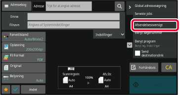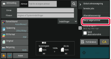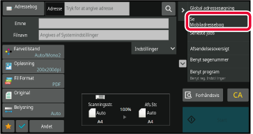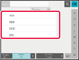 Når du bruger adressebogen i nem scanning eller e-mailfunktionen,