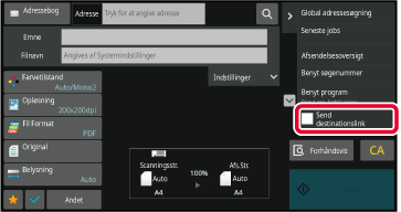 Når [Aktiver Send destinationslink som standard] er aktiveret i indstillinger (administrator),