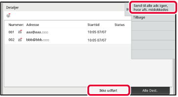Når du har trykket på fanen [Ikke udført], skal du trykke på [Send til alle adr. igen, hvor afs. mislykkedes] i handlingspanelet for at sende billedet igen.
