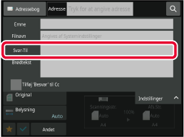 For at ændre svaradressen skal du trykke på indtastningsfeltet [Svar-Til].