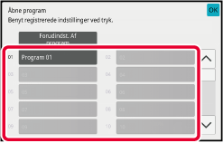 Læg originalen i den automatiske dokumentfeeders bakke eller på glaspladen i henhold til funktionen, der er gemt i programmet.Tryk på den ønskede programtast.