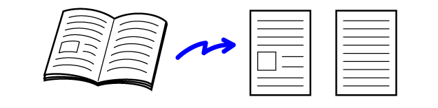 Når scanningen er afsluttet, placeres næste original, og der trykkes på tasten [Start].Det åbne opslag i en ryghæftet brochure