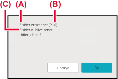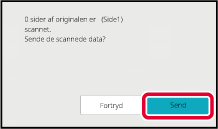 Der lyder et bip for at angive, at scanning er afsluttet.Når scanningen er afsluttet, skal du kontrollere antallet af originalark og antallet af ark, der skal sendes og trykke på tasten [OK] for at starte transmission.