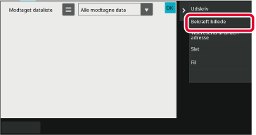 Tryk på tasten for de modtagne data, du ønsker at kontrollere, og tryk på [Bekræft billede] i handlingspanelet.