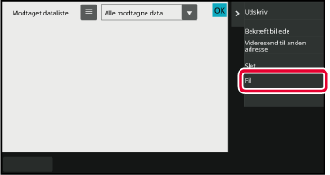 Tryk på tasten for de modtagne data, du ønsker at gemme, og tryk på [Fil] på handlingspanelet.