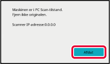 [Afslut], der vises på berøringspanelet, som kan bruges på maskinen; ingen