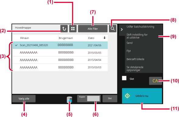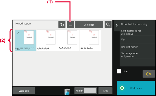 - Vælg eller slet alle filer. Ved at trykke på denne tast skiftes