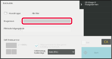 → [Dokument Arkiverings Indstillinger] → [Drifts Indstill.] → [Batchprint indstillinger].