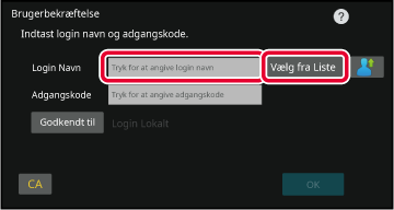 Valg fra en brugerliste Tryk på tasten [Vælg fra Liste], og vælg et brugernavn på skærmen