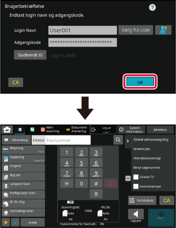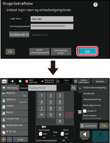 Kontakt maskinens administrator for at få at vide, hvilket loginnavn/adgangskode
